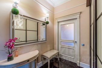 В соседнем крыле расположились кабинет, санузел и гостевая спальня с собственной гардеробной.